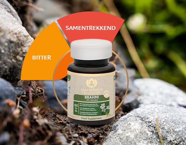 Een andere benaming voor brahmi is kruid van de genade. Een groep krachtige verbindingen uit bacopa monnieri (brahmi), de zogeheten bacosiden, staan bekend om hun ondersteunende werking voor het zenuwstelsel* en de cognitieve functies*, en vanwege het ontspannende effect op het brein*. Dit komt doordat ze de Vata- en Kapha-dosha’s in balans brengen.