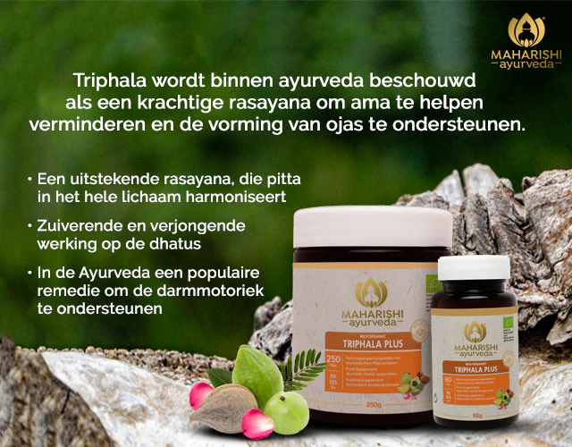In Triphala Plus van Maharishi Ayurveda zijn de beste eigenschappen van een zeer geprezen voedingssupplement bijeengebracht. Triphala is voedzaam en ondersteunt de vorming van ojas, volgens ayurveda de allerfijnste lichaamsmaterie. Ojas is bevorderlijk voor een lang leven, lichaamskracht, een aantrekkelijke uitstraling en geluk.